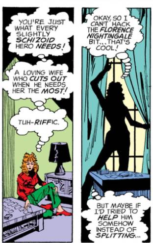 In some respects, however, it has not dated well. The dialogue is stilted and misogynistic. Nelson treats his wife Inza with frustrated contempt, and Inza is depicted as an unfaithful drip. Writer Martin Pasko has explained what he was out to achieve – from 1st Issue Special #9 (December, 1975) | Attack of the 50 Year Old Comic Books: